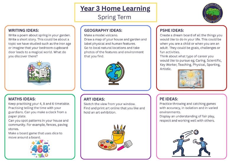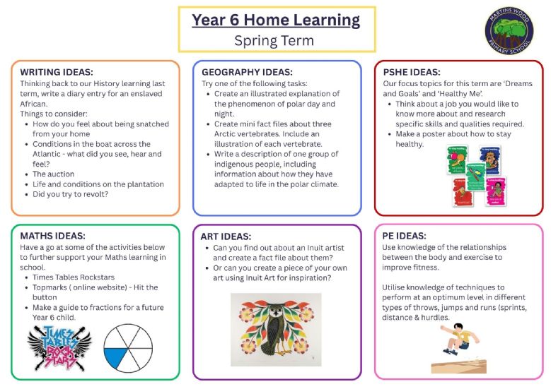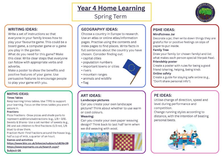 Our ‘Home Learning Hand’ shares our expectations linked to home learning. In Key Stage 1 and Key Stage 2, children are given a home learning book in which to complete tasks set by their teachers – these tasks are linked to their learning in school so can be completed independently. Early Years activities will be communicated via Tapestry.